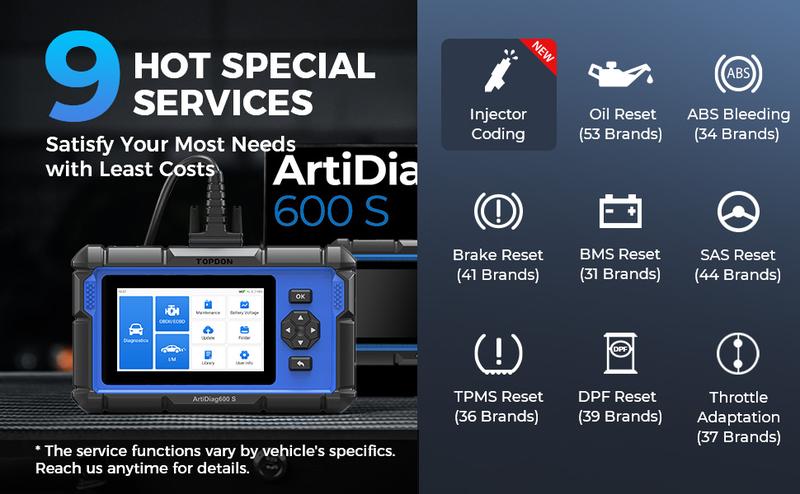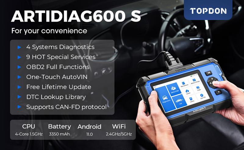 TOPDON AD600S Escáner OBD2 Automotriz – Diagnóstico de Motor/ABS/SRS/Transmisión, 9 Funciones de Reinicio, Actualización Wi-Fi de por Vida