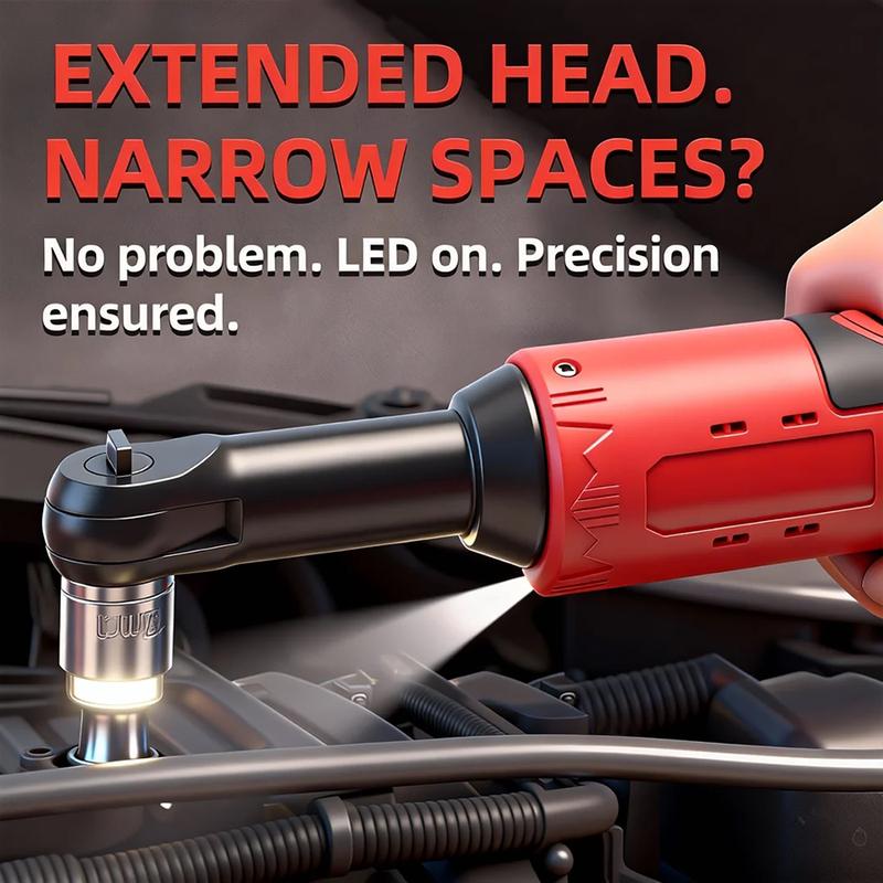 Llave de Ángulo Recto Eléctrica 3/8" – 45 Nm, Trinquete Inalámbrico para Reparación de Autos, Retiro de Tuercas y Tornillos, Herramienta Eléctrica sin Cables
