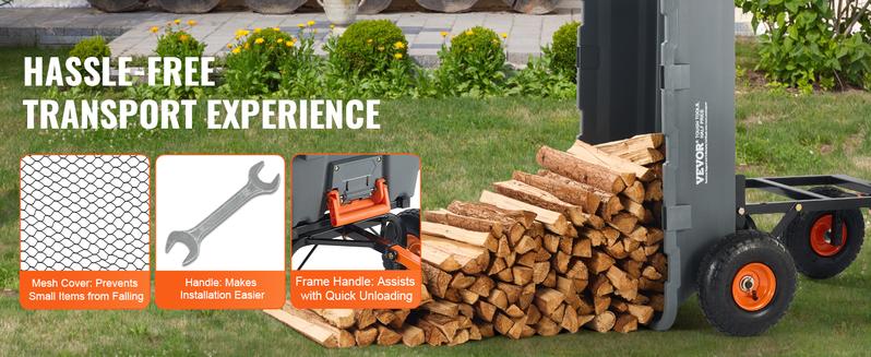 Este carro de jardín, con un robusto armazón metálico de 1,2 pulgadas de grosor, es capaz de soportar hasta 1500 libras de peso. Su generosa capacidad hace que cada transporte resulte sumamente sencillo.