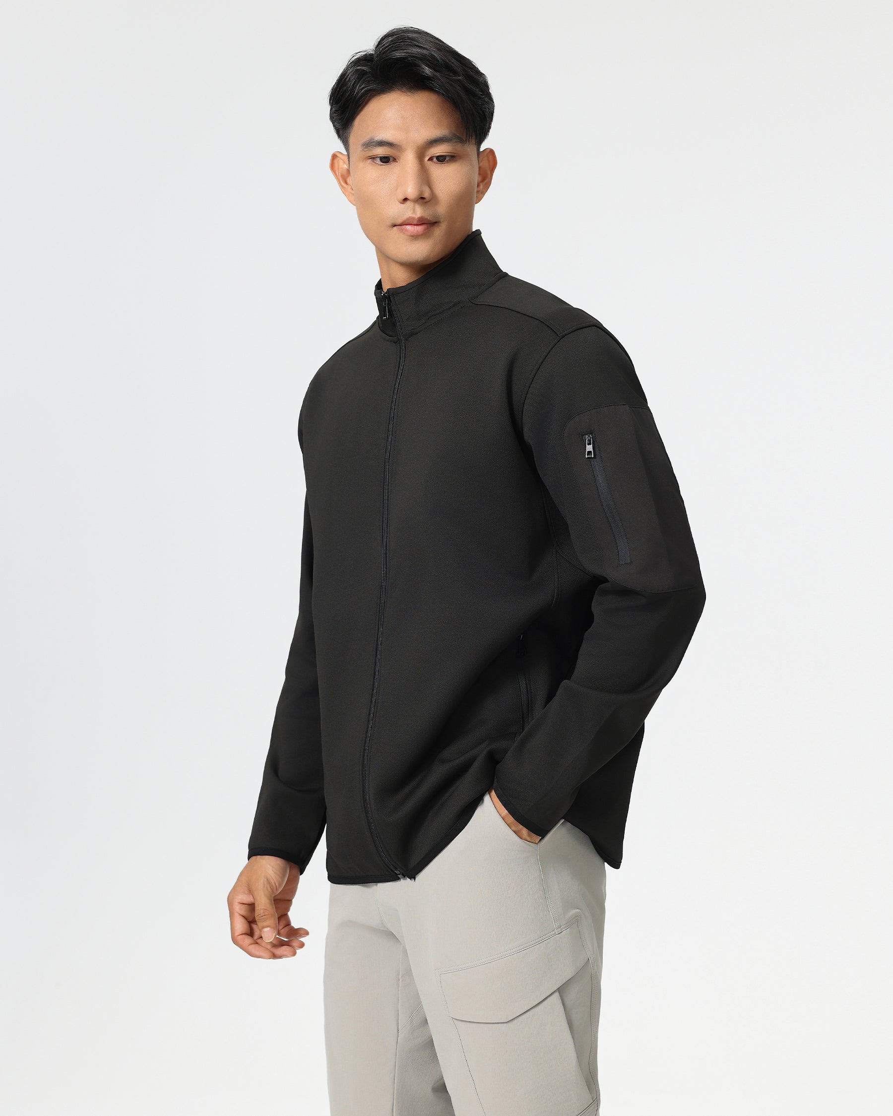 El material elástico en cuatro direcciones se adapta a sus movimientos, proporcionando una flexibilidad y libertad de movimiento máximas. El bolsillo en el brazo, astutamente ubicado, es práctico y elegante a la vez, y es perfecto para cosas pequeñas como llaves o tarjetas.
