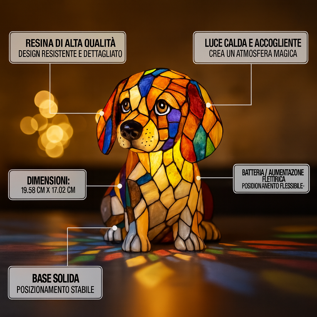 Imagina un rincón de tu hogar que se transforma en cuanto enciendes la lámpara: los colores bailan en las paredes y un misterioso perrito te observa con ojos brillantes. Minoes es mucho más que una simple lámpara. Es una atmósfera, un punto de partida para cualquier conversación, una obra de arte que enriquece toda la habitación con su resplandor cálido y su carácter único.