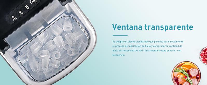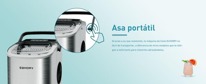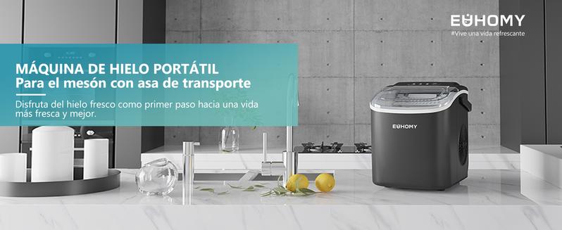 EUHOMY Máquina de Hielo de Encimera con Mango, Produce 11.79 kg en 24h, 9 Cubos Listos en 6 Min, Función de Autolimpieza, Portátil con Canasta y Cucharón, Ideal para Hogar, Cocina, Camping o RV