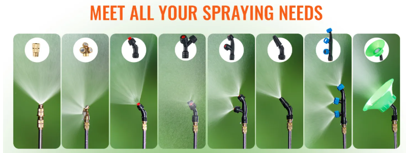 Incluye ocho boquillas diferentes y dos varillas para cubrir diversas necesidades. La varilla metálica se ajusta entre 21.5 y 39.4 pulgadas, adecuada tanto para trabajos cercanos como distantes. La varilla de plástico resistente a químicos es ideal para líquidos corrosivos. Cambia la boquilla o varilla según la tarea para lograr cobertura uniforme y resultados profesionales con mínimo esfuerzo.